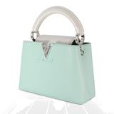 Introduced as part of Louis Vuitton’s 2024 seasonal collection, the Mini Capucines Python Handle captures the Maison’s spirit of refined craftsmanship and modern allure. Meticulously crafted from soft Taurillon leather, this elegant piece is distinguished by its genuine python top handle, adding a touch of exotic sophistication to the timeless Capucines silhouette. The compact design is elevated by silver-tone hardware, lending a sleek, contemporary edge, while a detachable shoulder strap allows for effortless day-to-night versatility. A collectible work of artistry, this 2024 edition embodies Louis Vuitton’s heritage of excellence, combining tradition, innovation, and the rare beauty of exotic detailing.